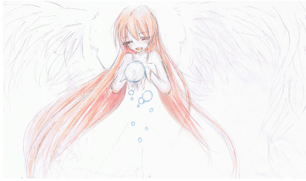 0.3シャープ 色鉛筆 COPIC あと修正と頬染め、青丸のためにPCでちょっといじってみた。